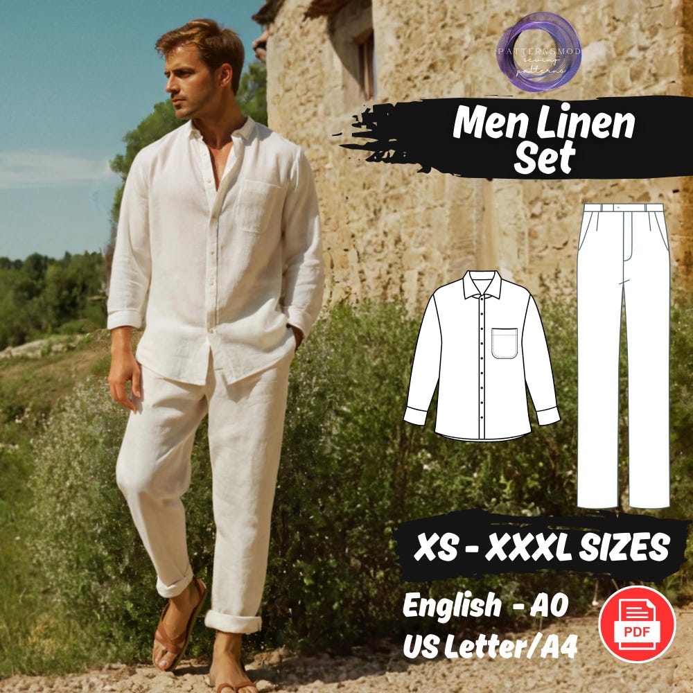 Loungewear Linen Set Sewing Pattern, Man Loose Shirt and Pants Pattern, Summer Casual Linen Set Pattern, XS – XXXL Men Sewing Patterns